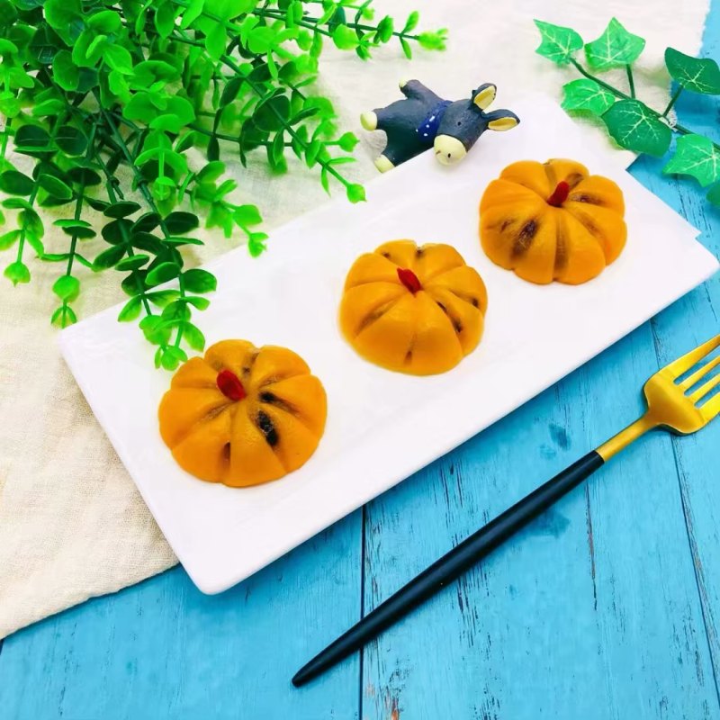 黄油20g;糖20g;酵母3g;盐2g;红豆沙适量;南瓜泥120g;面粉250g;水60g;肉松适量;