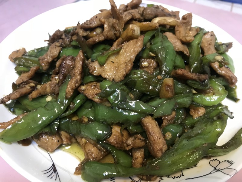 4:锅中油热下入肉丝,炒熟盛入盘中备用。锅中再放点油,油热放入姜蒜炒香,再放入螺丝椒,炒至8成熟时,倒入瘦肉,一起翻炒两三分钟,出锅啦,配上一碗米饭,真是太下饭啦!