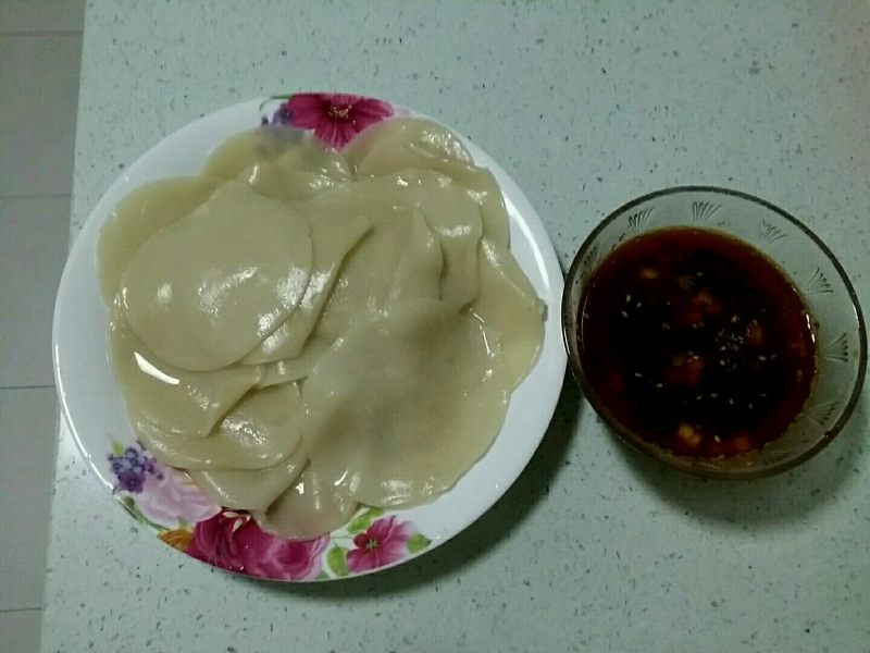 4:煮饺子皮的时候顺便烫一下韭苔,水煮的菜凉拌了少油少盐现在最受欢迎;