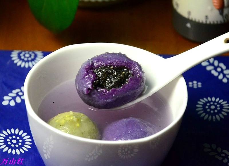 1.揉搓好的紫薯糯米粉一定要加开水和成面团,这样面团更筋道。2、米酒和元宵是绝配,没有的话可以不放