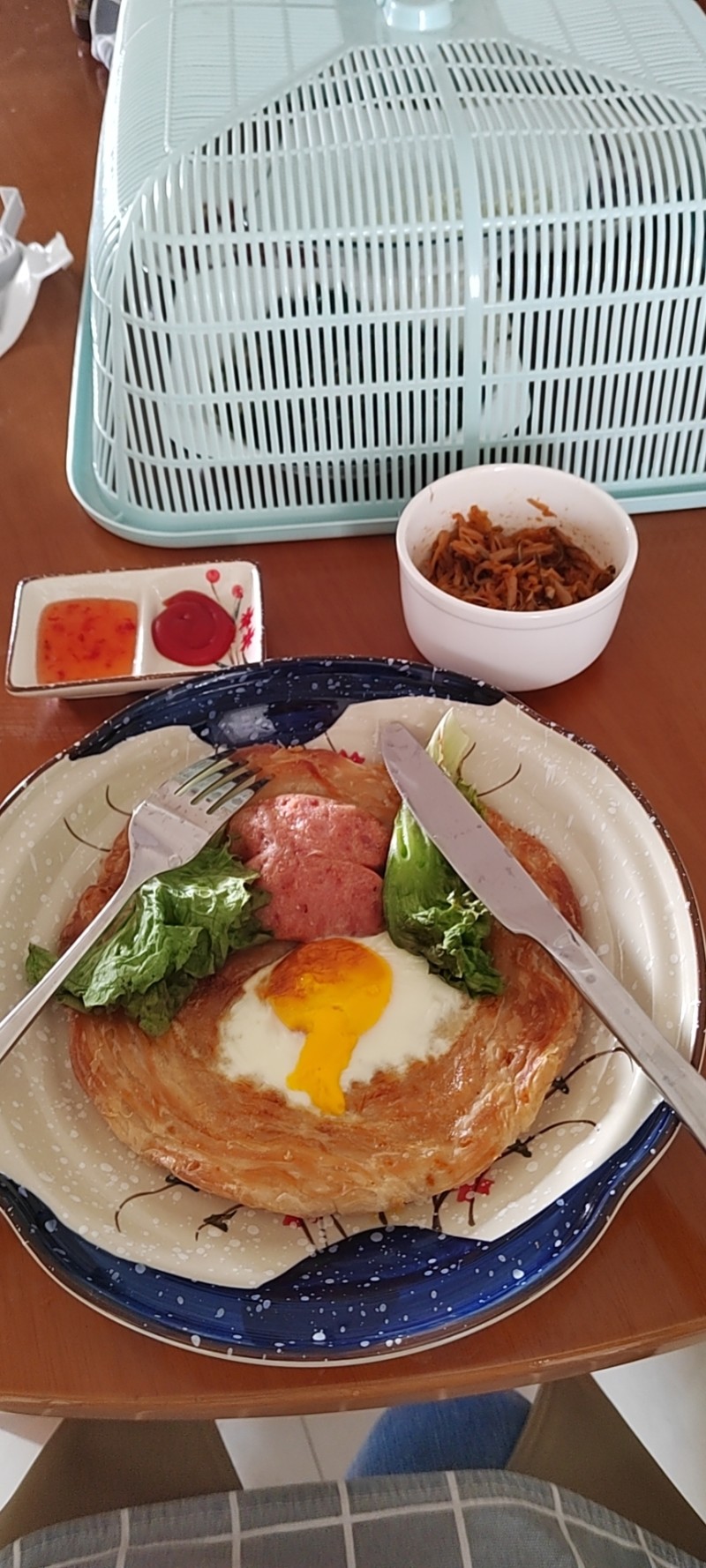 3:烤好五分种差不多鸡蛋和烤肠都熟了,就能起锅了。