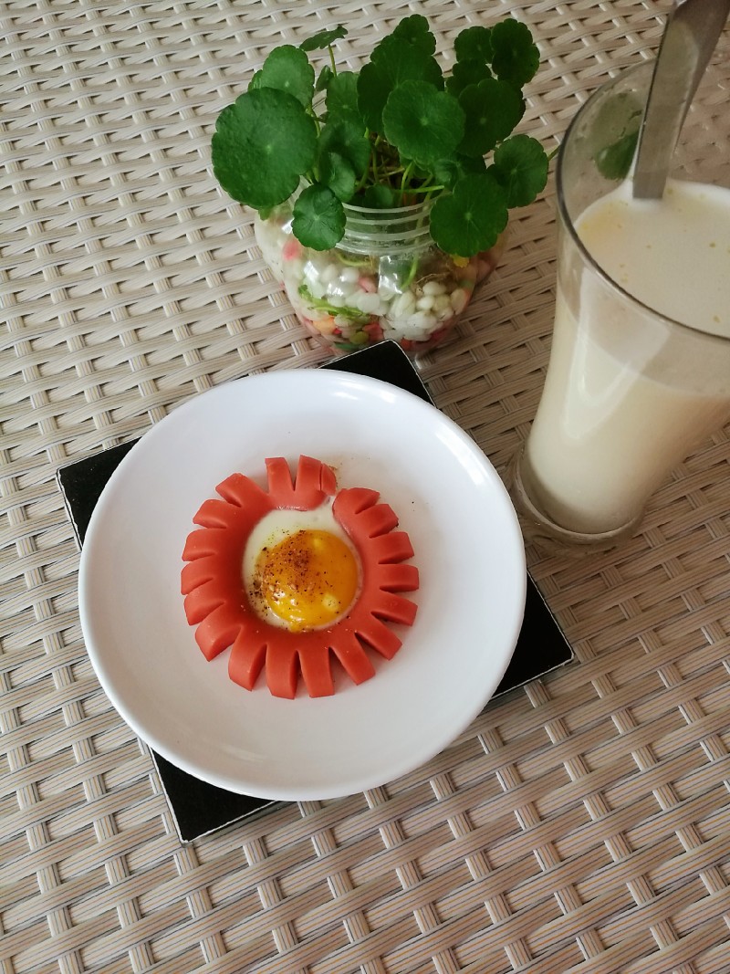 7:第二个我只将蛋黄和浓的那层蛋清勺到火腿肠圈中,稀的蛋清没用上,这样就不会太满了。