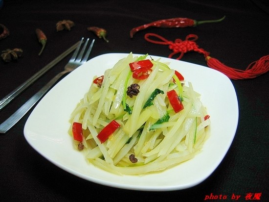 土豆丝要炒的,软硬且当,注意火候。醋不能放太多,