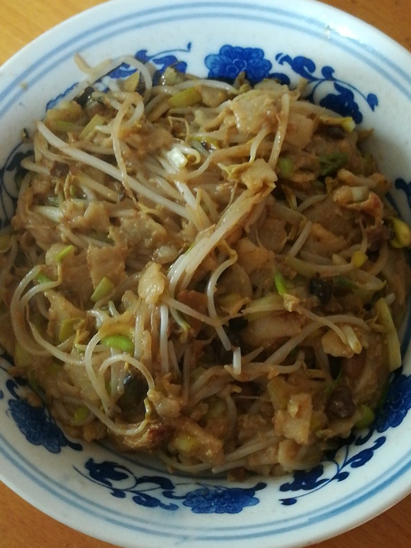 16:放入绿豆芽翻炒。