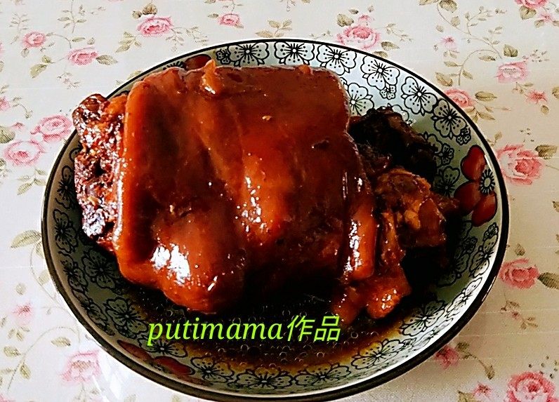 12:压制25分钟后打开高压锅盖,肘子味香、颜色很漂亮。