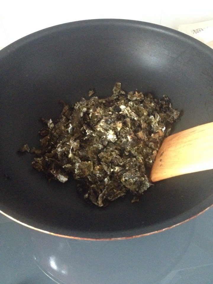 7:锅中放入地衣菜。