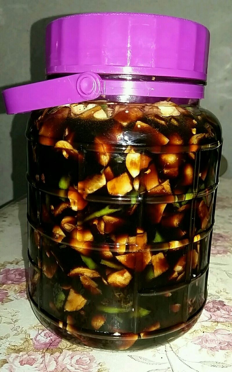 19:封上保鲜膜,拧紧盖子,放冰箱腌制3星期以上。(据说腌制品的亚硝酸盐要3星期才降至最低,所以我都腌3星期以上。)