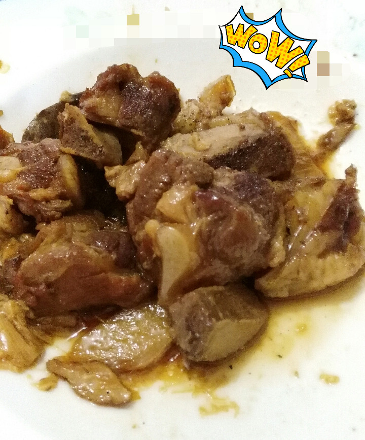 2:脆骨肉洗净切成小块。加入一包烤肉酱。
