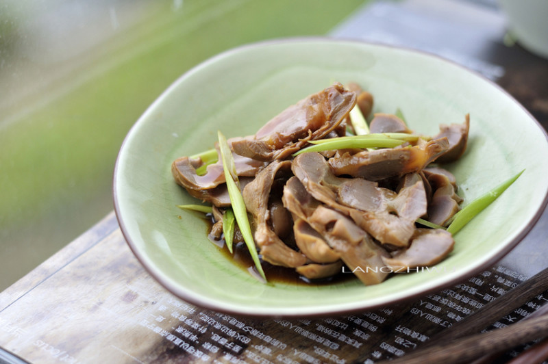 3:鸭胗取出切片,原汤加点香油即成蘸料。