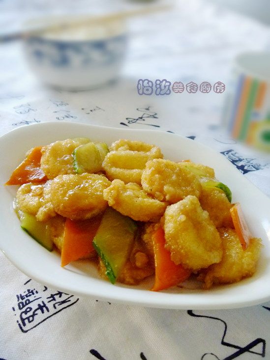 植物油适量;葱适量;食盐适量;姜丝适量;蛋清半个;鲍汁一勺;干粉三勺;糖1.5克;胡椒粉少许;