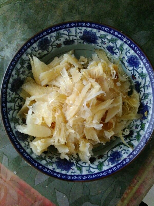 4:水冷后就可把鱼翅的软骨撕出,翅撕成小条即可。