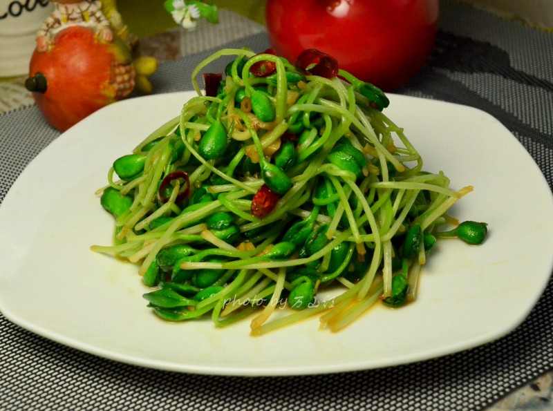 7:炒至豆芽变软,放入少许辣椒油翻炒几下