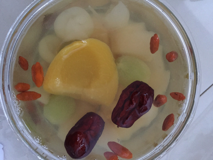 莲子10个;百合10个;红枣10个;桂圆10个;黄桃3个;葡萄10个;枸杞20个;