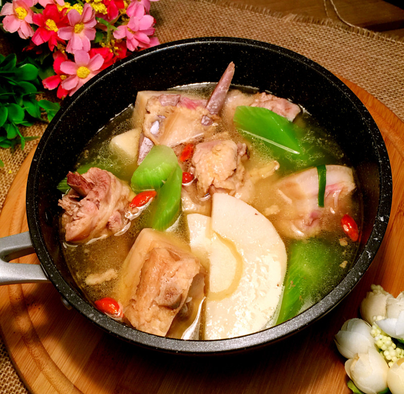 这个汤到最后尝尝味道后再来加盐,因为咸肉的咸味炖出来了!