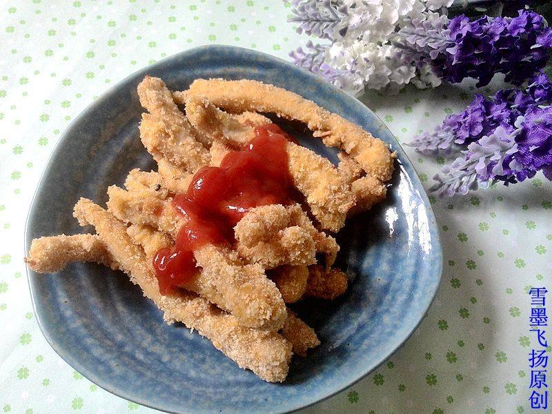 无骨鸡柳的做法小窍门:鸡柳裹糠的时候一定要一根一根的裹,等油温八成热时再下锅