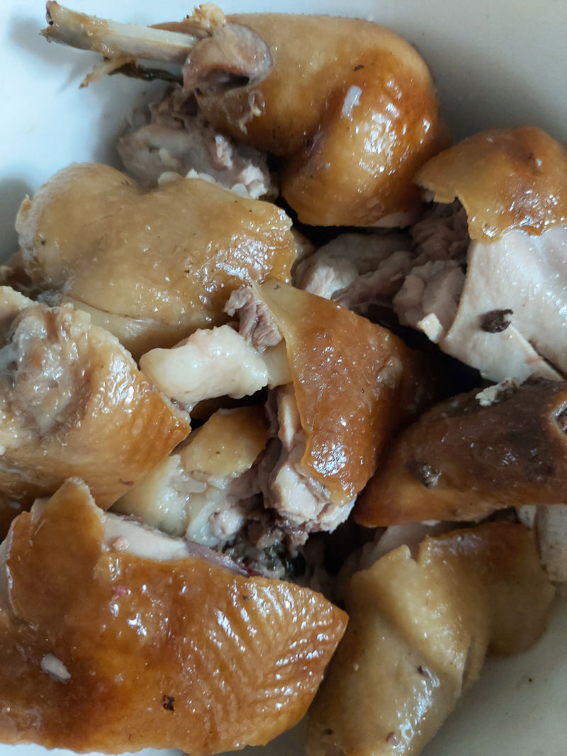 1:整只鸡洗净,沥干水,用盐、生抽里外抹一遍。放入冰箱腌制一晚。