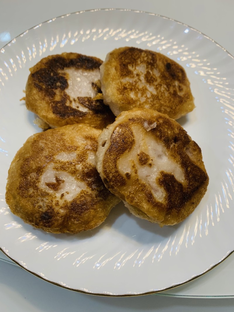 7:平底锅加热,放油,将芋头饼两面煎黄。