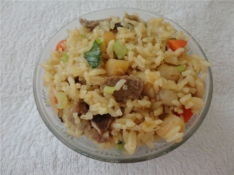 煮咸饭的时候,添加的水分不宜过多,熟米饭要粒粒分明,这样吃起来口感特别好。配料可以按自己喜欢的口味调整