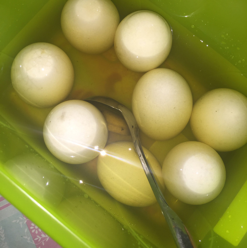 5:调好的花椒水倒入容器,没过鹅蛋花椒八角挑出来,盖盖放入阴凉通风处,半个月后煮熟就可以享用美味的腌鹅蛋啦!