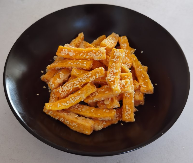 香酥冬瓜的极致美味秘诀在于:精选厚实冬瓜,切均匀薄片,先以盐腌去水,再裹薄淀粉锁住内里水分。油温七成热时下锅,中火炸至微黄捞出,升高油温复炸至金黄酥脆。关键在两次油炸——初炸定型熟透,复炸逼出余油、成就酥香。出锅撒椒盐或蘸酸甜酱,外皮焦脆、内里软嫩,咸香惹味,趁热食用风味最佳。