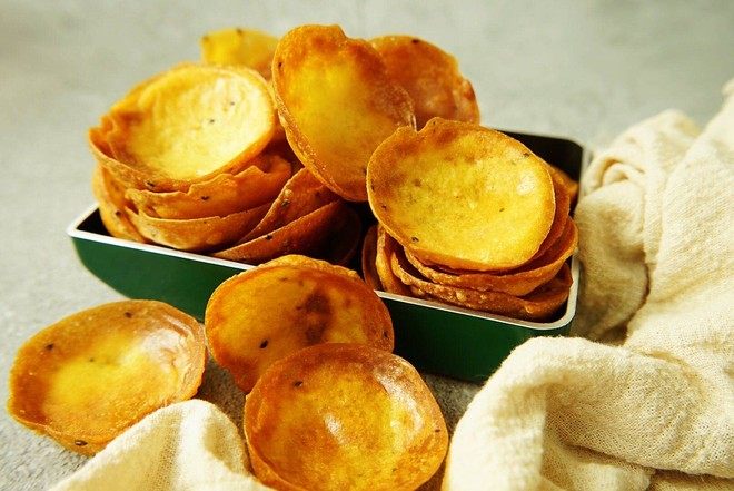 6:待薄饼四周上翘,将其翻面。