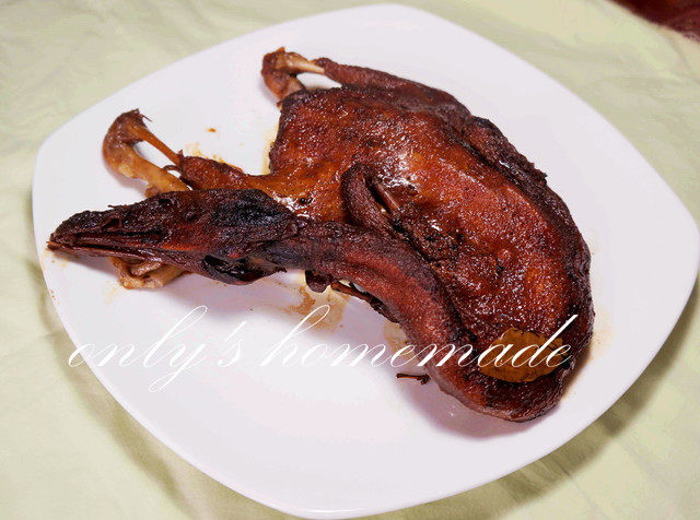 10:根据自己的烤箱脾气进行调试,最少50分钟,鸭子才会熟。脆皮汁最少刷3次