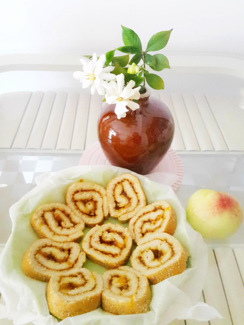 橘子果酱芝麻桃子蛋糕卷
