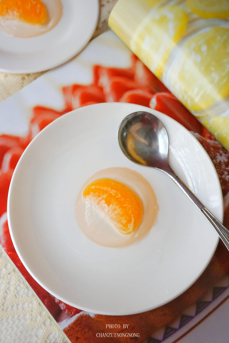 8:也可以倒出来,自己做的橘子多多啊,不喜欢这么多橘子的,也可以适当增加液体的量,但要注意的是,吉利丁片一般5克是配200--250克的比例,如果做的多注意增加吉利丁片。