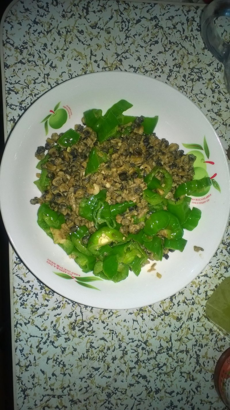 5:到少许食用油到炒锅中,油烧至7分热,下姜丝,螺狮,翻炒2-3分钟,加入醋、黄酒、酱油,然后倒入切好的青椒和姜片,稍炒2分钟,放盐即可出锅。