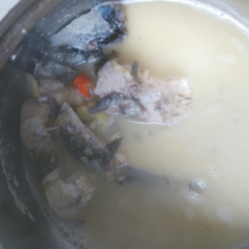 8:奶白色的鱼头汤煲好了,鲜甜可口,好喝的停不了口呢…
