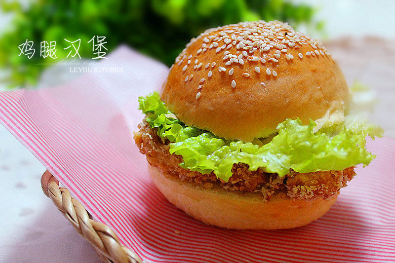 汉堡面包2个;鸡腿2个;面包糠适量;鸡蛋1个;