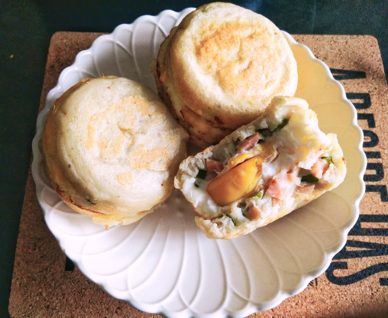 一个模具中的面团算下来要105克左右,成品很大个,可以适当减少一下生面团的重量;汉堡夹的材料可以随口味调整;烘烤的时间和温度视自家烤箱来调整。