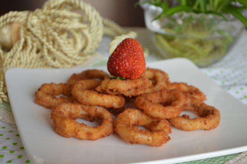 鱿鱼圈切稍微厚一点,炸了肉质会收缩。