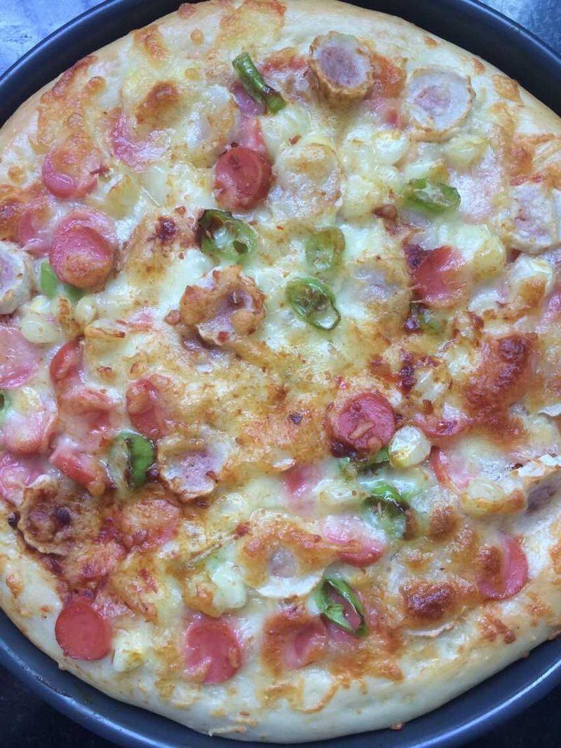 披萨酱1勺;番茄酱2勺;橄榄油1勺;盐1匙;玉米粒2勺;青豆2勺;口蘑5个;雨润台式香肠1个;