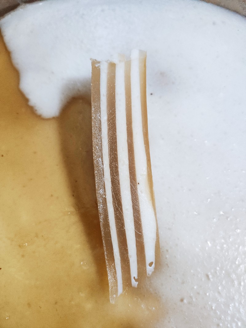 12:那就是搅拌后的红糖部分和椰浆部分。
