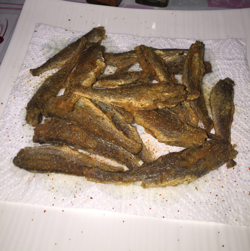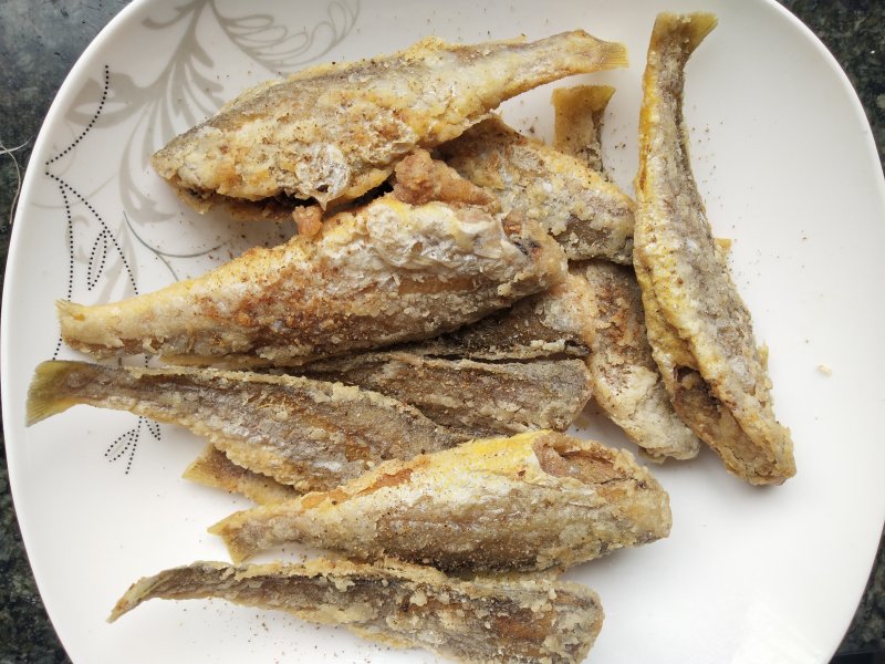 8:装盘,撒上一点椒盐,又香又酥的小黄鱼就炸好啦。