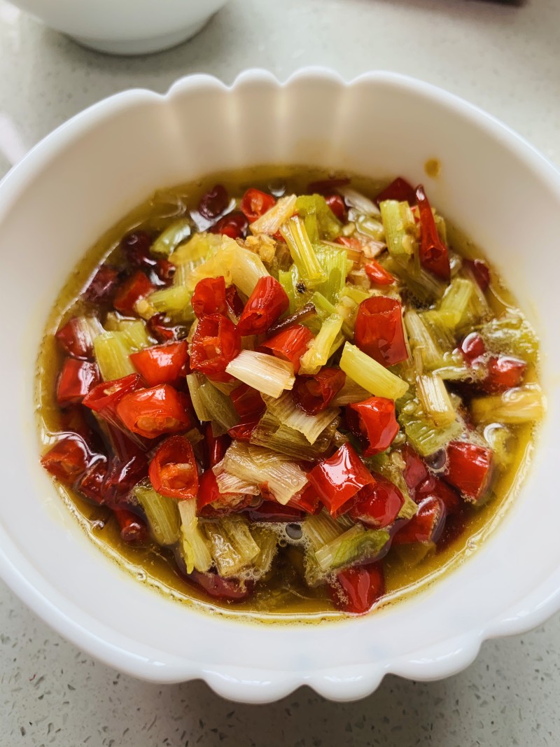 4:炒锅热油入葱姜蒜辣椒