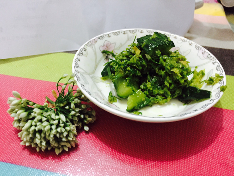 8:晾晒干净的韭菜花用蒜揪捣碎