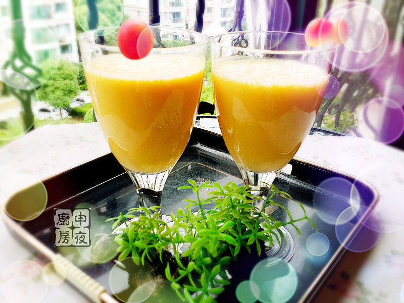 1:二人份:准备甜玉米二颗、芒果适量、牛奶200毫升