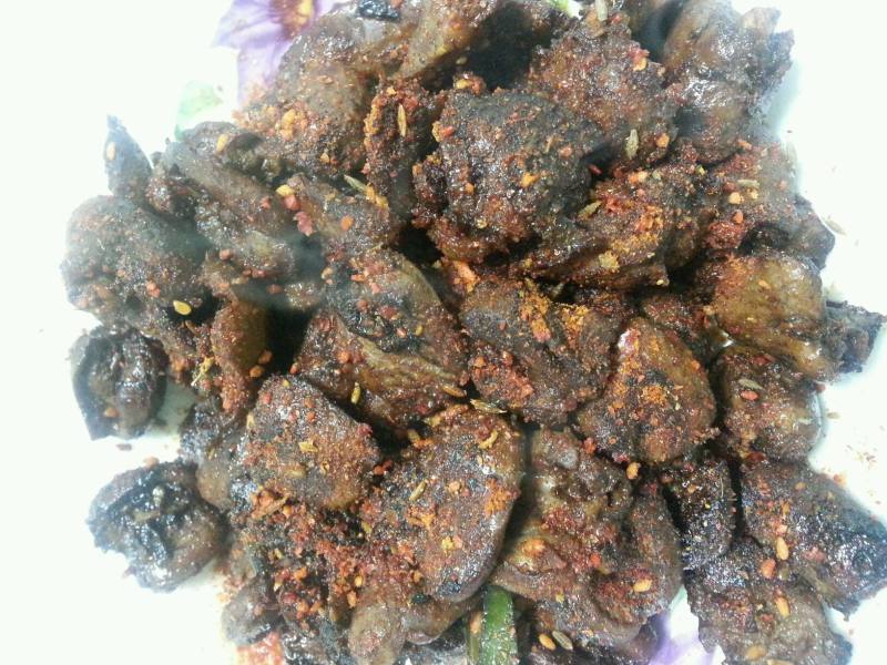 4:把鸭心炒干,最好不要加水,炒至金黄色就好,最后加入酱油翻炒均匀。
