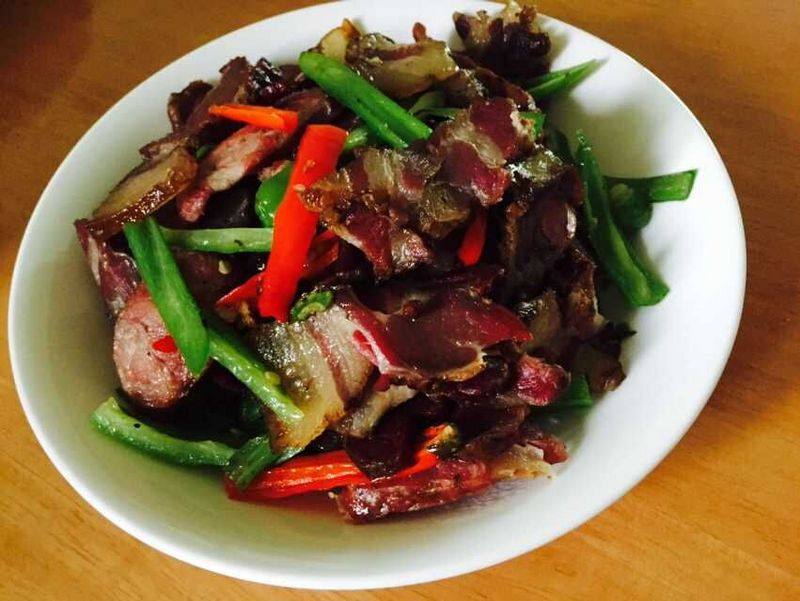 1:腊肉200g。腊肉的选材很关键,一定要是正宗的湘西土猪肉,才能得正宗口味(儿时在家,腊肉都是母亲自己熏制,那种味道是无论过去多少年都不能忘的。网上入手的王家五腊肉,是记忆里的味道。)