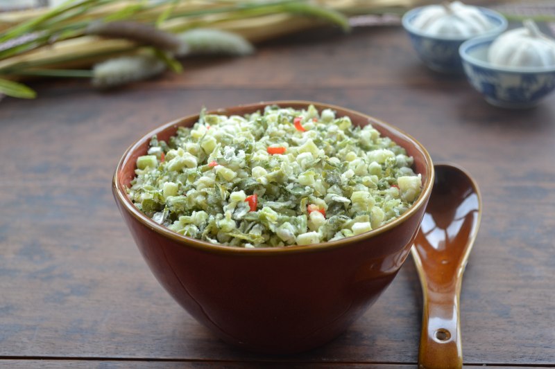 芹菜麦饭家常做法简单:芹菜切碎拌面粉,上锅蒸熟后,用蒜末、辣椒和调料热油一泼,拌匀即可。