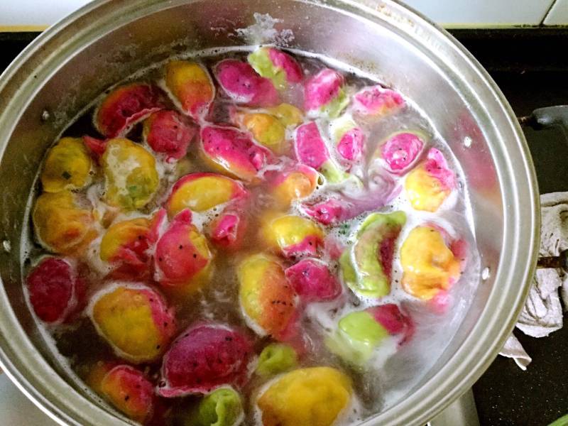 12:水开就往锅里撒些凉水,如果肉馅就这样重复三遍洒水,如果是素馅放两遍清水就可以了