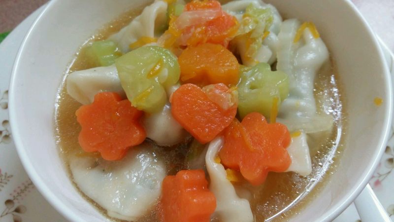 饺子250克;红罗卜10克;南瓜20克;青瓜10克;小白菜5克;