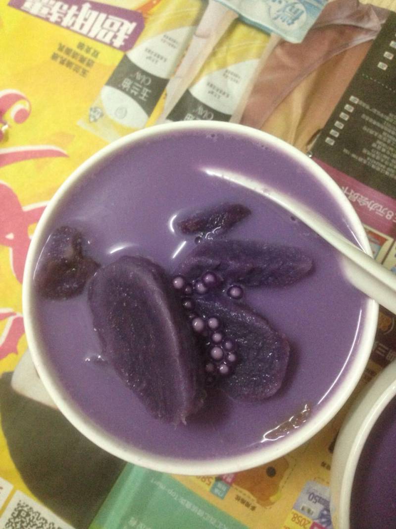 紫薯一个;丸子适量;桃胶20克;牛奶适量;