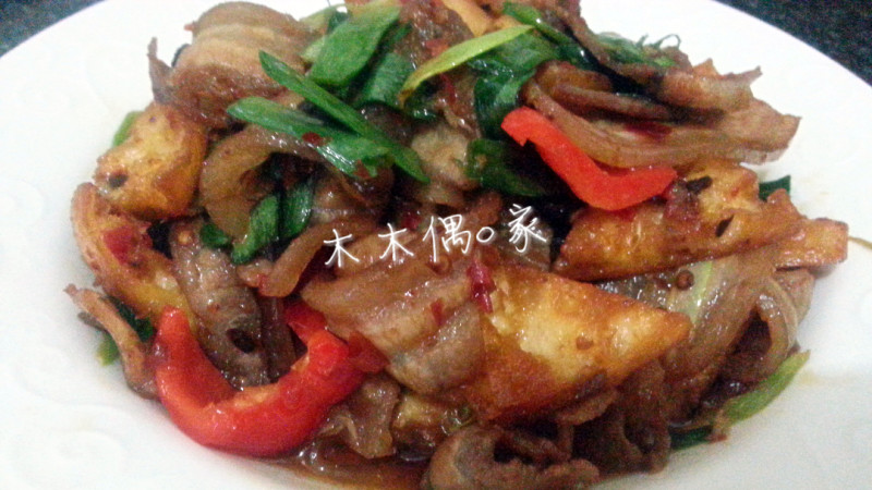 1:锅盔改刀切成如图状放入油锅炸至金黄捞出备用