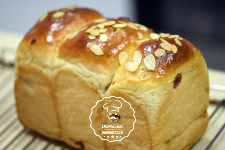 9:将德普嵌入式烤箱调制快热档170度,放在最中下层进行焙烤,时间约30min,表面颜色金黄出炉,微震后,立即将面包出模,防止收缩;