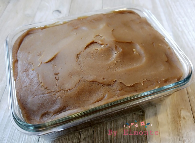 4:煮好的栗子连水稍凉后一起倒入搅拌机里打成细腻的栗子泥。(我分了几次打好的。)