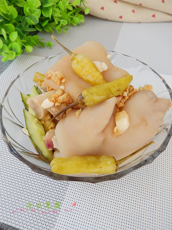 1、猪蹄不能压得时间太长,这样更有嚼劲,按个人喜欢口感吧。2、泡椒水煮开后,加入猪蹄可以用汤锅煮好泡着不动,或放碗里,入冰箱。3、加入黄瓜或萝卜也可以。或不加。