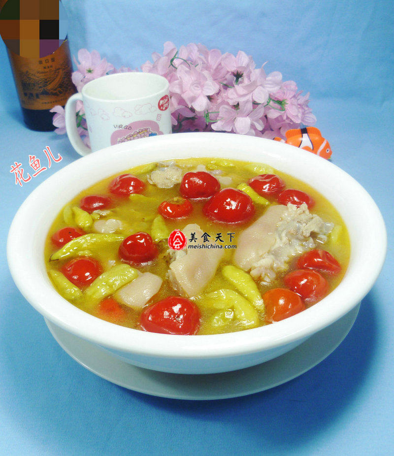 猪蹄495克;小米辣泡椒1包;红泡椒160克;